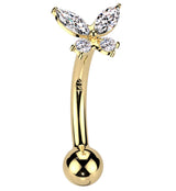 14kt Gold Butterfly Clear CZ Threadless Curved Barbell