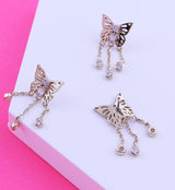 14kt Gold Butterfly Clear CZ Triple Dangle Chains Threadless Top