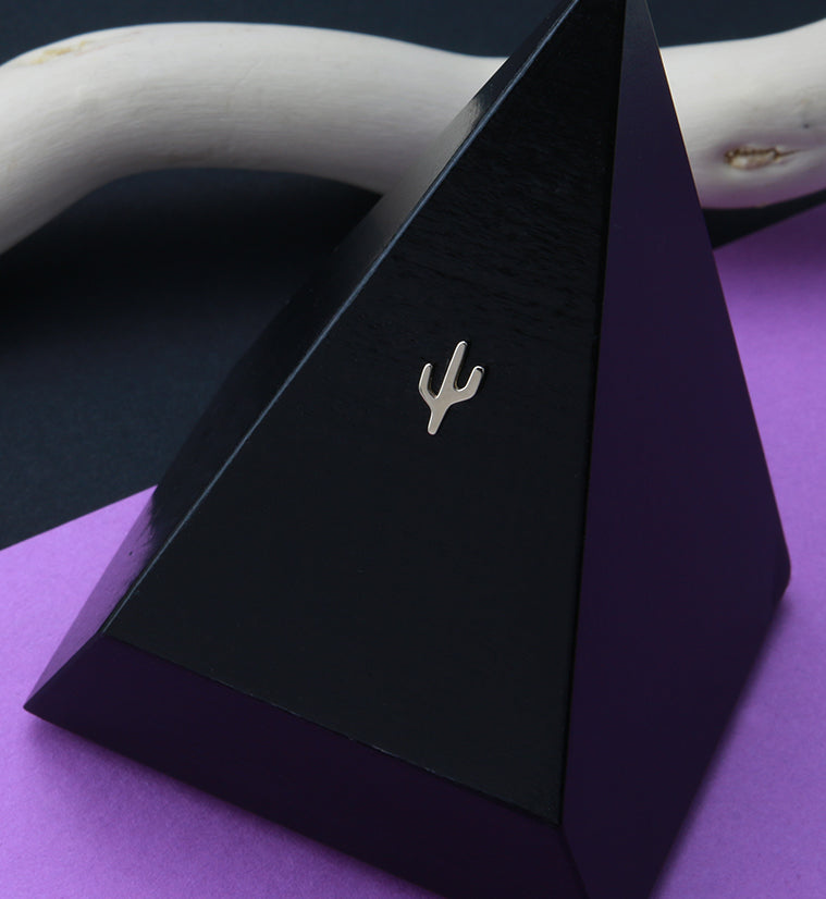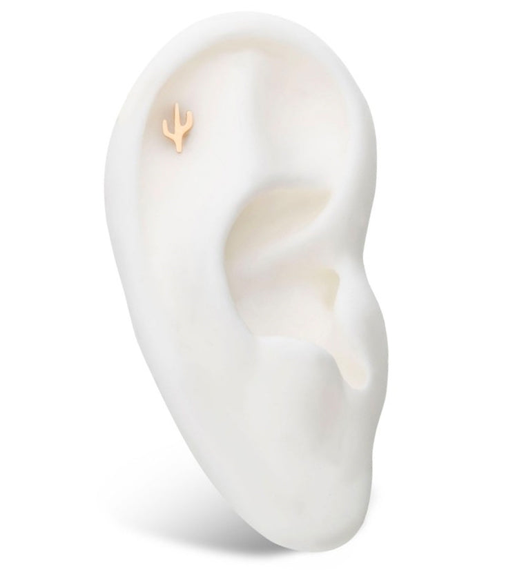 Cactus shaped threadless top jewelry piece. It is made from 14kt nickel-free gold and has a 316LVM stainless steel pin. It is sized at 5mm x 8mm and sold individually. For healed piercings.