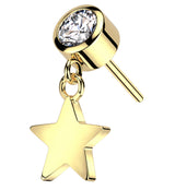 14kt Gold Celestial Star Dangle CZ Threadless Top