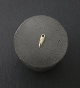 Jewelry charm shaped like cone or spike that is filled with clear cz gems. Made from 14kt nickel-free yellow gold. Match this charm with different size hoops and hinged segment clickers for a unique look! Small, versatile piece for a variety of piercings. Great for a curated ear look. O-ring size: 0.8mm (thick) x 2mm (inner diameter) x 3.6mm (outer diameter). Charm size is 10mm x 2.5mm. Sold individually (1pc).