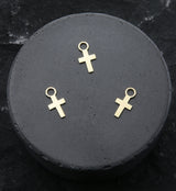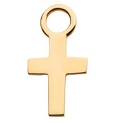 Cartilage jewelry charm shaped like a cross shape. Made from 14kt nickel-free yellow gold. Match this charm with different size hoops and hinged segment clickers for a unique look! Small, versatile piece for a variety of piercings. Great for a curated ear look. O-ring size: 0.8mm (thick) x 2mm (inner diameter) x 3.6mm (outer diameter). Charm size is 8.5mm x 6mm. Sold individually (1pc).