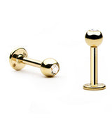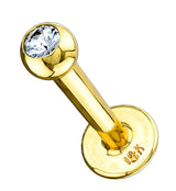 14kt Gold CZ Top Flat Back Labret Post