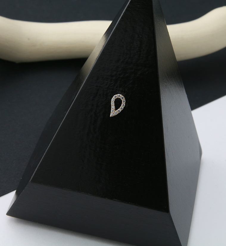 Sparkling 14kt nickel-free gold droplet top piece. Made from clear cubic zirconia gems and 316LVM ASTM F-138 stainless steel. Size is 7mm x 4.2mm. Sold individually (1 piece - top only).