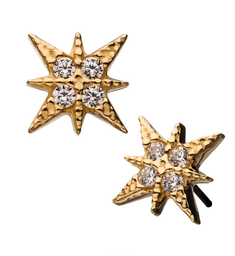 Sold individually (1 piece - top only) 14kt gold Threadless Size: 7.5mm 316LVM stainless steel pin Designed to fit the barbells/labrets below Threadless Labret Threadless Barbell