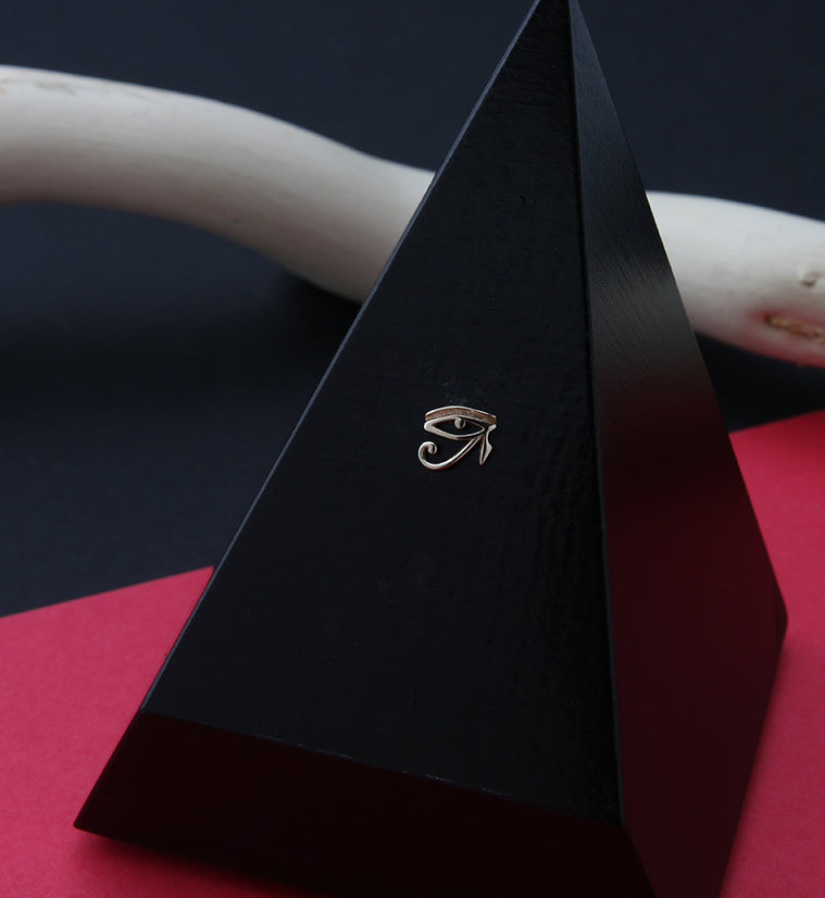 Add an element of Egyptian mythology to your jewelry collection by getting this Eye of Ra threadless top piece! It is made from 14kt nickel-free yellow gold with a 316LVM ASTM F-138 stainless steel pin. Sized at 6mm x 5.5mm. Sold individually (1 piece - top only).
