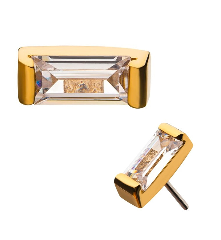 Sold individually (1 piece - top only) 14kt gold Threadless Size: 5mm x 2mm Cubic zirconia gem 316LVM stainless steel pin Designed to fit the barbells/labrets below Threadless Labret Threadless Barbell