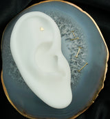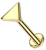 This 14kt gold labret features a 4mm flat, triangle shape and is sold individually. It is available in 20G with a 1/4" (6mm), 9/32" (7mm) or 5/16" (8mm) wearable length to choose from. The back disk size is flat as well and measures 3mm. The threadless design has an easy closure with a cute top.