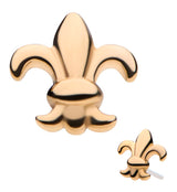 14kt nickel-free yellow gold fleur de lis top piece. 316LVM ASTM F-138 stainless steel pin. Sized at 5mm x 5mm. Sold individually (1 piece - top only).