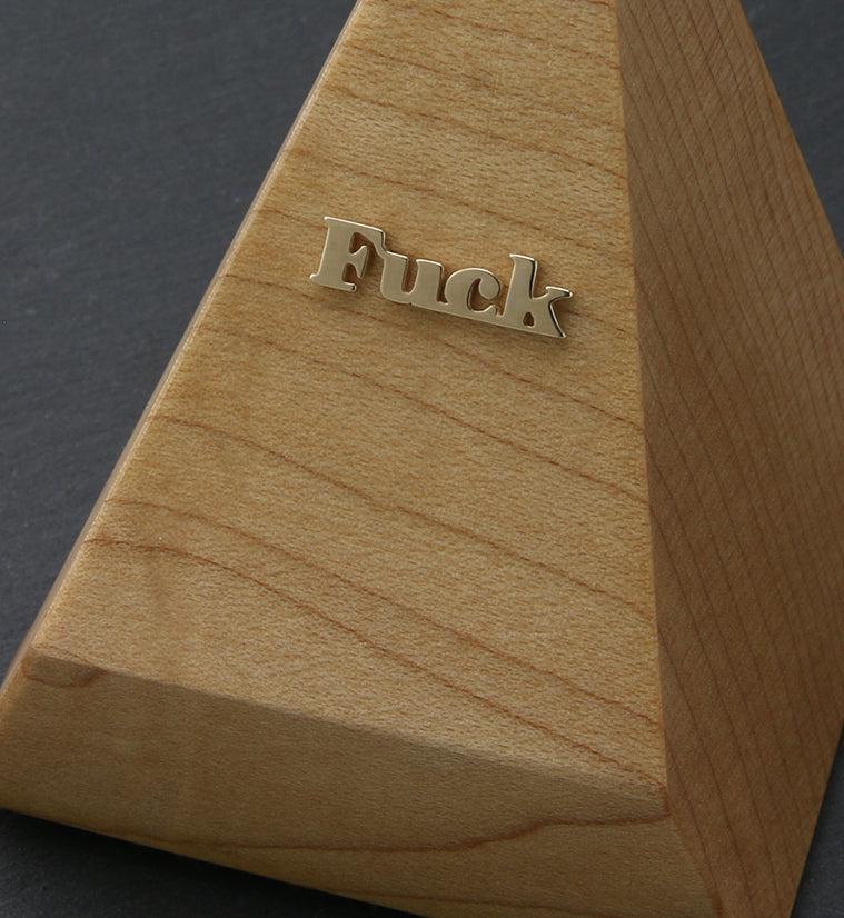 Threadless top piece that has the word "Fuck". Fits all threadless posts. Made from 14kt nickel-free gold with a 316L stainless steel pin. Pin size is 25G. Length is approximately 6mm. Top size is about 15mm x 4mm. Sold individually (1pc, top only).