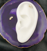 Threadless top piece that has an arched design that is filled with five, synthetic, white opalite marquise cz gems. Fits all threadless posts. Made from 14kt nickel-free gold with a 316L stainless steel pin. Pin size is 25G. Length is approximately 5mm. Top size measures around 8.5mm x 4.5mm. Sold individually (1pc-top only).