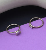 Sparkling half moon hoop ring that is easy to wear for most nose and/or cartilage piercings. The annealed (bendable) 14kt gold hoop makes this piece easy to insert and take out. Clear cubic zirconia gems make up the half moon design on top. Size is 20G with an inner diameter of 5/16" (8mm). Sold individually. For healed piercings.
