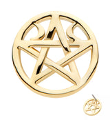 Threadless top piece that has a pentacle design that is accented by two crescent moons. Fits all threadless posts. Made from 14kt nickel-free gold with a 316L stainless steel pin. Length is approximately 5mm. Top size: 6.5mm x 6.5mm. Sold individually (1pc, top only).