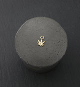 Jewelry charm shaped like a hemp leaf. Made from 14kt nickel-free yellow gold. Match this charm with different size hoops and hinged segment clickers for a unique look! Small, versatile piece for a variety of piercings. Great for a curated ear look. O-ring size: 0.8mm (thick) x 2mm (inner diameter) x 3.6mm (outer diameter). Charm size is 7mm x 6.5mm. Sold individually (1pc).