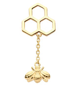 14kt Gold Honeycomb Dangle Bee Threadless Top