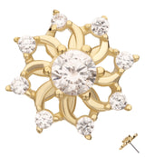 14kt Gold Interweaving Flower Clear CZ Threadless Top