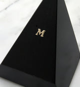 Threadless letter "M" top piece. Made from 14kt nickel-free gold with a 316LVM stainless steel pin. Size is approx. 6mm x 4.6mm. Sold individually (1pc, top only).