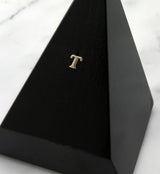 Threadless letter "T" top piece. Made from 14kt nickel-free gold with a 316LVM stainless steel pin. Size is approx. 4.6mm x 4.3mm. Sold individually (1pc, top only).