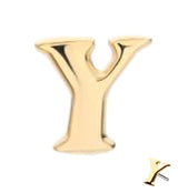 Letter "Y" threadless top piece that is crafted from nice 14kt nickel-free yellow gold with a 316LVM stainless steel pin. Size measures approximately 4.6mm x 4.5mm. Sold individually (top only).