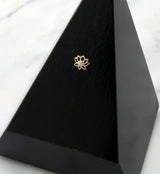 Lotus flower shaped threadless top piece with a sparkling, clear cz gem in the middle. Made from 14kt nickel-free gold with a 316LVM stainless steel pin. Size is approx. 5.7mm x 5mm. Sold individually (1pc, top only).
