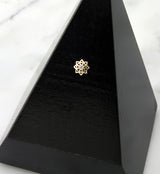 Dainty mandala flower threadless top piece with a clear cz gem in the middle. Made from 14kt nickel-free gold with a 316LVM stainless steel pin. Size is approx. 5.5mm x 5.5mm. Sold individually (1pc, top only).