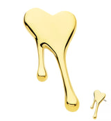 Threadless top piece that has a melting heart design. Fits all threadless posts. Made from 14kt nickel-free gold with a 316L stainless steel pin. Pin size is 25G. Length is approximately 6mm. Top size is about 11mm x 5mm. Sold individually (1pc, top only).