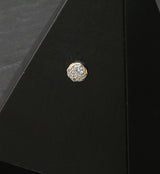 Threadless top piece with a circular disk shape and multiple cz gems throughout. Made from 14kt nickel-free gold. Length is approximately 6mm. Top size: 5mm. Sold individually (1pc, top only).
