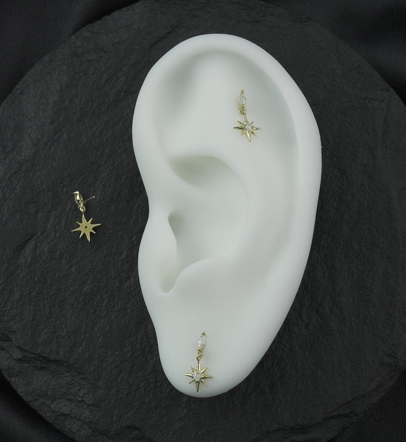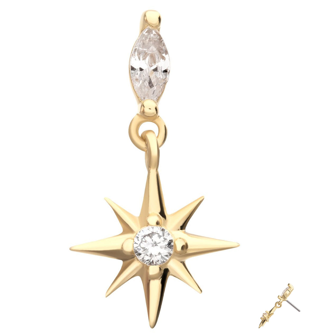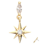 14kt Gold North Star Dangle Clear CZ Threadless Top