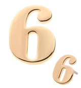 14kt nickel-free gold number 6 shaped threadless top piece. 316LVM stainless steel pin. Sized at 7mm x 5mm. Sold individually (1 piece - top only). Free shipping.