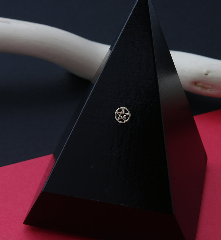 Add some magic to your jewelry collection with this pentacle symbol threadless top piece. It is made from 14kt nickel-free yellow gold with a 316LVM ASTM F-138 stainless steel pin. Sized at 5mm x 5mm. Sold individually (1 piece - top only).