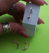 14kt Gold Prong Clear CZ Belly Button Ring