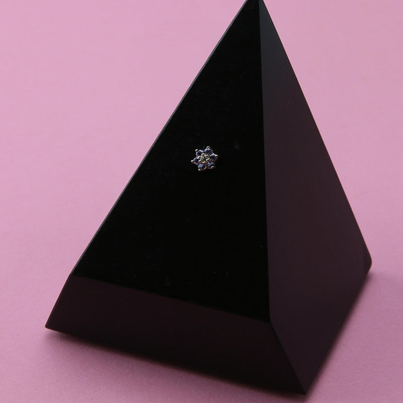 Sold individually (1 piece - top only) 14kt gold 316LVM stainless steel pin Cubic zirconia gems Threadless Flower size: 5.5mm Designed to fit the barbells/labrets below Threadless Barbell Threadless Labret