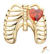 14kt Gold Ribcage Red Heart CZ Threadless Top
