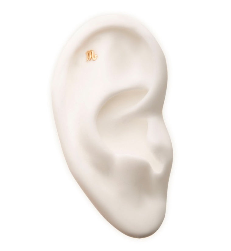 Sold individually (1 piece - top only) 14kt gold Threadless Scorpio - October 23 to November 21 316LVM stainless steel pin Size: 5mm x 4mm Designed to fit the barbells/labrets below Threadless Labret Threadless Barbell