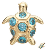 14kt Gold Sea Turtle Aqua CZ Threadless Top