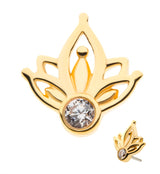 Flower petal threadless top piece with a sparkling cz gem. Made from 14kt nickel-free gold with a 316LVM stainless steel pin. Size is approx. 6.5mm x 6.5mm. Sold individually (1pc, top only).