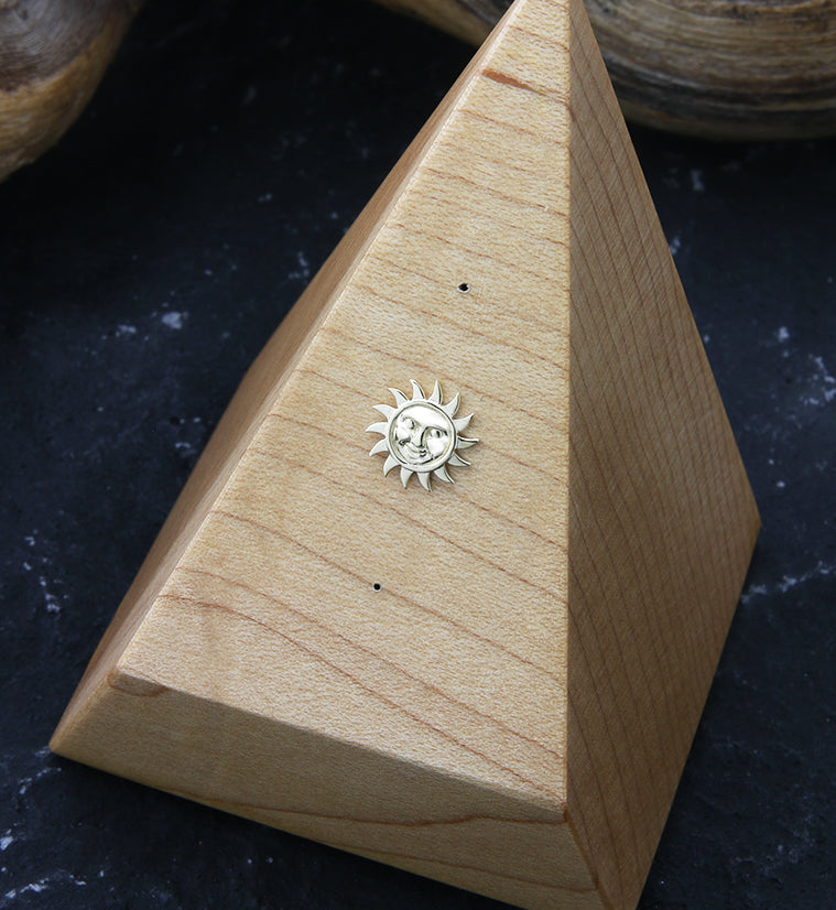 Threadless top piece that has a sun face design. Fits all threadless posts. Made from 14kt nickel-free gold with a 316L stainless steel pin. Pin size is 25G. Pin length is approximately 4.5mm. Size is about 9mm x 9mm. Sold individually (1pc, top only).