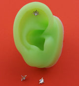 Shining threadless top piece that has sunburst design with a centered, synthetic white opal gem. Fits all threadless posts. Made from 14kt nickel-free gold with a 316LVM ASTM F-138 implant grade steel pin. Length is approximately 5mm. Top size: 7.8mm x 5.3mm. Sold individually (1pc, top only).