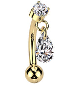 14kt Gold Teardrop Dangle Clear CZ Threadless Curved Barbell