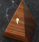 Threadless top piece that has an angel wing design that is filled with a teardrop, synthetic white opalite gem. Meant for right ear. Fits all threadless posts. Made from 14kt nickel-free gold with a 316L stainless steel pin. Top size: 11mm x 5.5mm. Pin size is 25G. Pin length is approximately 5mm. Sold individually (1pc, top only).