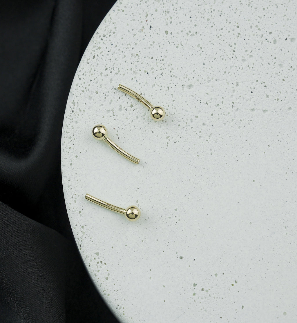 Threadless curved barbell posts to pair with different threadless tops! Made from 14kt gold with a threadless design. Add your favorite threadless tops! Size is 16G with a 5/16" (8mm) length and complete with a fixed ball end that measures 3mm. Sold individually (1pc).