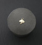 Jewelry charm shaped like cloud with a lightning bolt that is filled with clear cz gems. Made from 14kt nickel-free yellow gold. Match this charm with different size hoops and hinged segment clickers for a unique look! Small, versatile piece for a variety of piercings. Great for a curated ear look. O-ring size: 0.8mm (thick) x 2mm (inner diameter) x 3.6mm (outer diameter). Charm size is 11mm x 9mm. Sold individually (1pc).