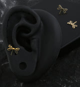 Threadless top piece that has a cut out dragonfly design. Fits all threadless posts. Made from 14kt nickel-free gold with a 316L stainless steel pin. Length is approximately 5mm. Top size: 10mm x 8.2mm. Sold individually (1pc, top only).