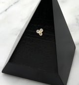 Sold individually (1 piece - top only) 14kt gold Threadless Size: 4mm 316LVM stainless steel pin Swarovski CZ Designed to fit the barbells/labrets below Threadless Barbell Threadless Labret