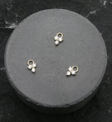 Jewelry charm shaped like a trinity shape filled with three, sparkling, clear cz gems.