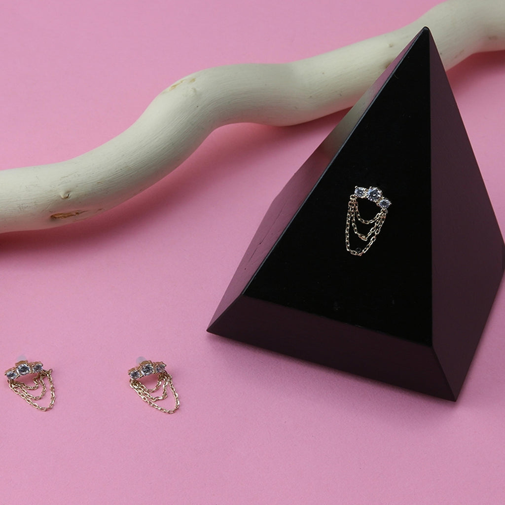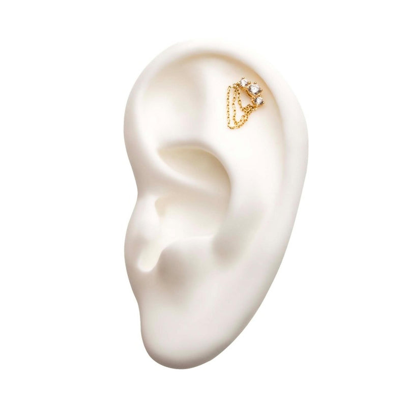 14kt Gold Triple CZ Prong Chain Threadless Top