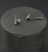 Threadless labret with a bee design on top that has two clear cubic zirconia gems. Made from 14kt white gold. Disk size is 3mm. Choose your gauge: 18G or 16G. Length is 5/16" (8mm). Sold individually (2 pieces - top and bottom). For healed piercings.