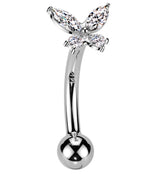 14kt White Gold Butterfly Clear CZ Threadless Curved Barbell