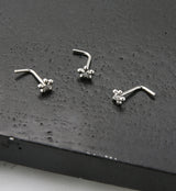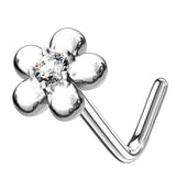 14kt White Gold Daisy Clear CZ L Bend Nose Ring