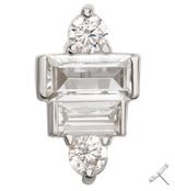 Add some sparkle to your cartilage or tragus piercings with our 14kt White Gold Dual Baguette CZ Threadless Top. This top piece features clear CZ gems set in nickel-free white gold, making it both stylish and hypoallergenic. With its 25G pin and 8mm x 4.7mm size, it's the perfect addition to your jewelry collection. Sold individually.